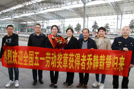 集团公司举行欢迎仪式,欢迎“全国五一劳动奖章”获得者乔静返回阜阳。