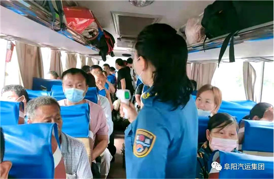 配客点工作人员发车前对乘客进行测温